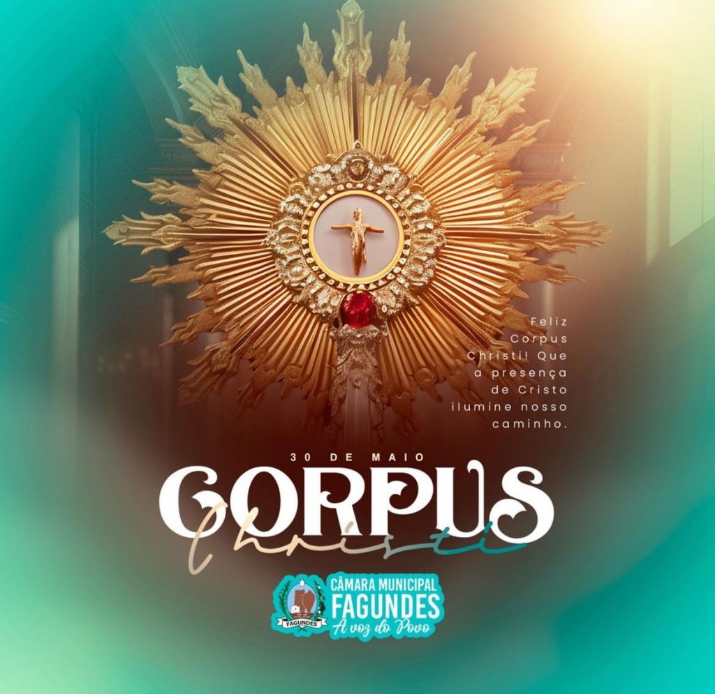 Dia 30 de maio é comemorado o Corpus Christi, uma data de reflexão, de busca por fraternidade e paz interior. Nós que fazemos parte da Câmara Municipal de Fagundes desejamos um bom feriado para todos!