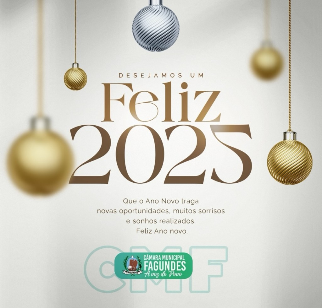 A Câmara Municipal agradece a confiança e o apoio de todos ao longo deste ano. Que 2025 seja marcado por mais união, diálogo e conquistas para Fagundes. Juntos, continuaremos trabalhando pelo bem de toda a população! Feliz Ano Novo.