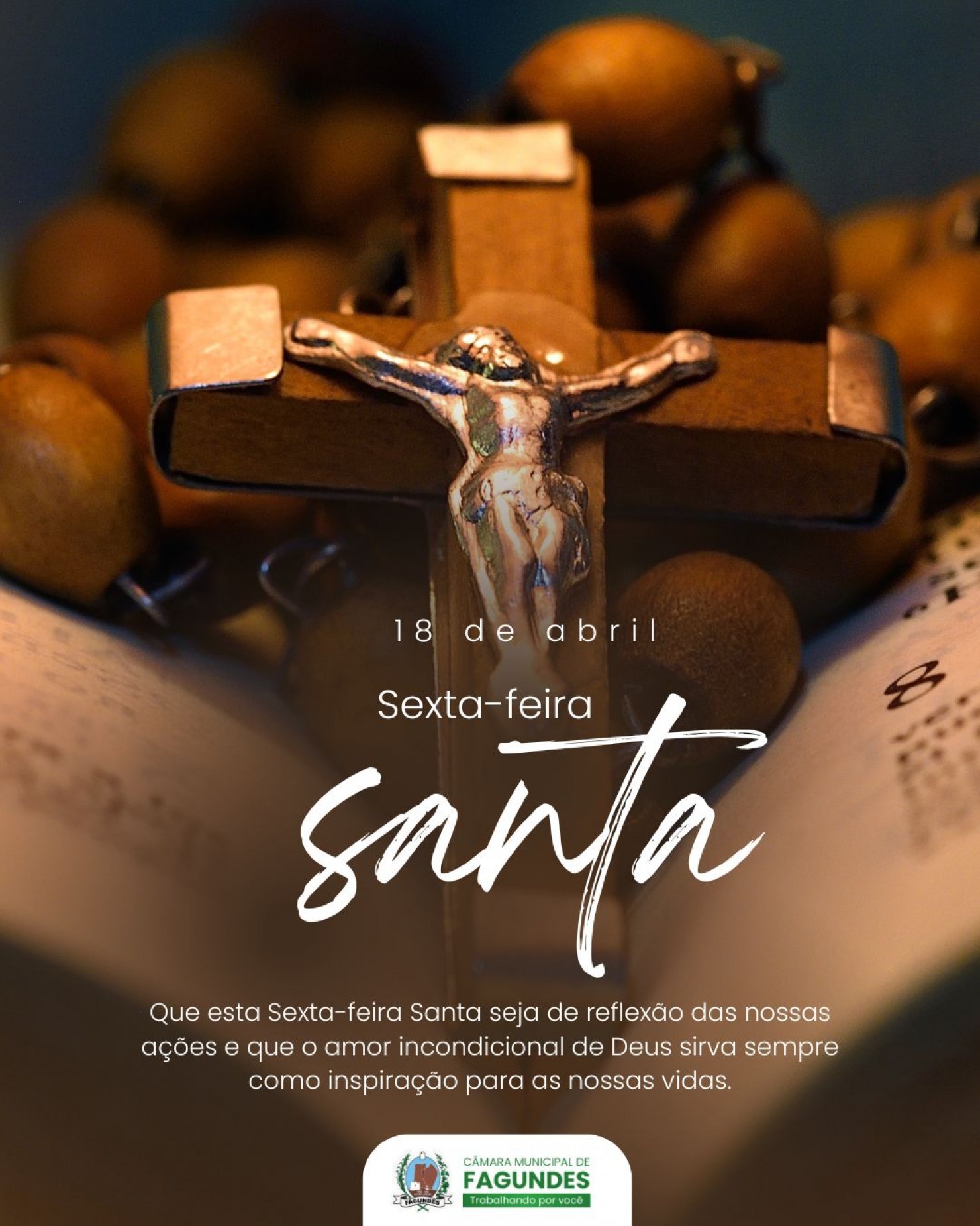 Nesta Sexta-feira Santa, a Câmara Municipal de Fagundes, convida a população a refletir sobre os ensinamentos de Cristo: amor, humildade, perdão e entrega.